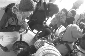 We got back into the car and kept driving but we were all antsy to get out again, especially as there were beautiful villages everywhere that we were missing. At one point we stopped in a small village and started to walk around. One house had a cooking area set up under a tarp and after some gestures we joined them as saw how they were cooking, cutting the really long noodles over a pot and boiling meats. We were outside taking pictures and the family started gesturing for us to come in. They took us into their kitchen and gave us all something to eat. It was this cereal in a sweet, syrupy water: it tasted amazing. It was so lovely to share food with this family even though none of us could communicate properly with them and had nothing to give them. All the children were so cute, some were to shy to pose for pictures and would hide behind their parents or other little children.